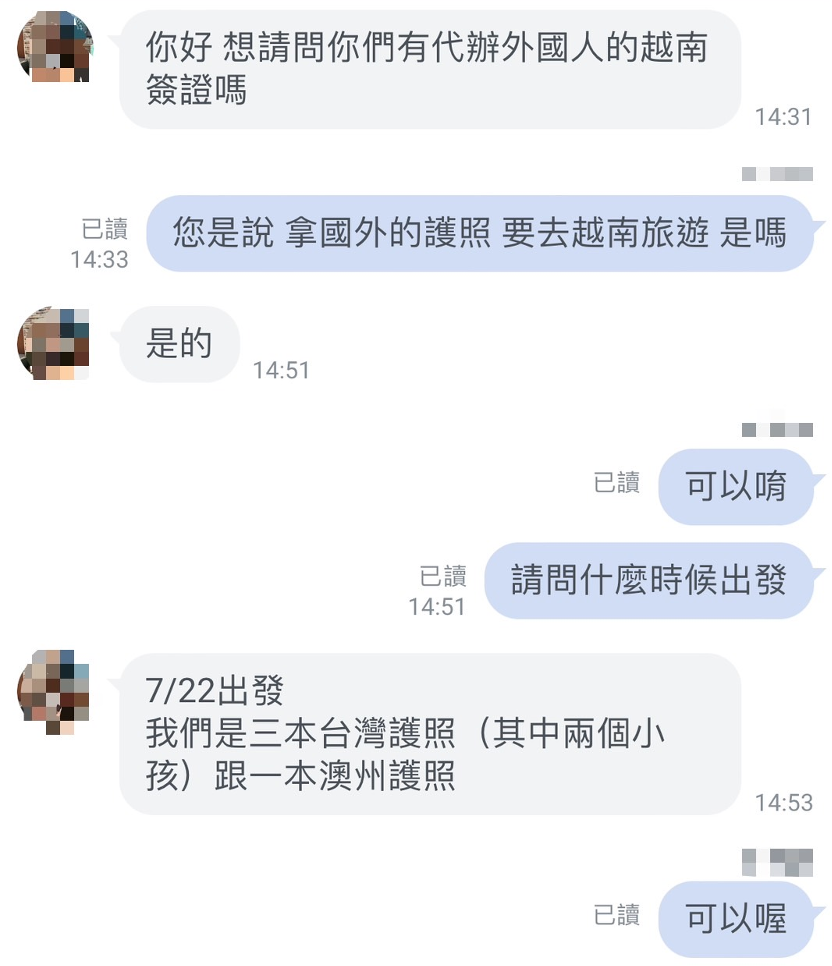 越南簽證各類疑問皆有專人線上回覆