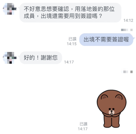 客人:不好意思想要確認,用落地簽的那位成員,出境還需要用到簽證嗎?